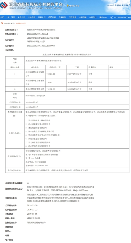 中標(biāo)公告-威縣2019年方營鎮(zhèn)高標(biāo)準(zhǔn)農(nóng)田建設(shè)項目