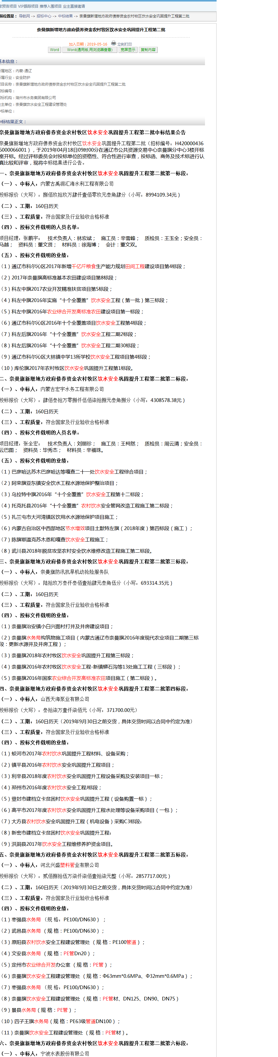 興盛管業(yè)中標(biāo)奈曼旗新增地方債券資金農(nóng)村牧區(qū)飲水安全鞏固提升工程