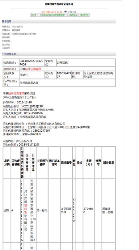 熱烈慶祝我公司在河北石家莊內(nèi)鑲貼片式滴管帶采購(gòu)項(xiàng)目工程中標(biāo)