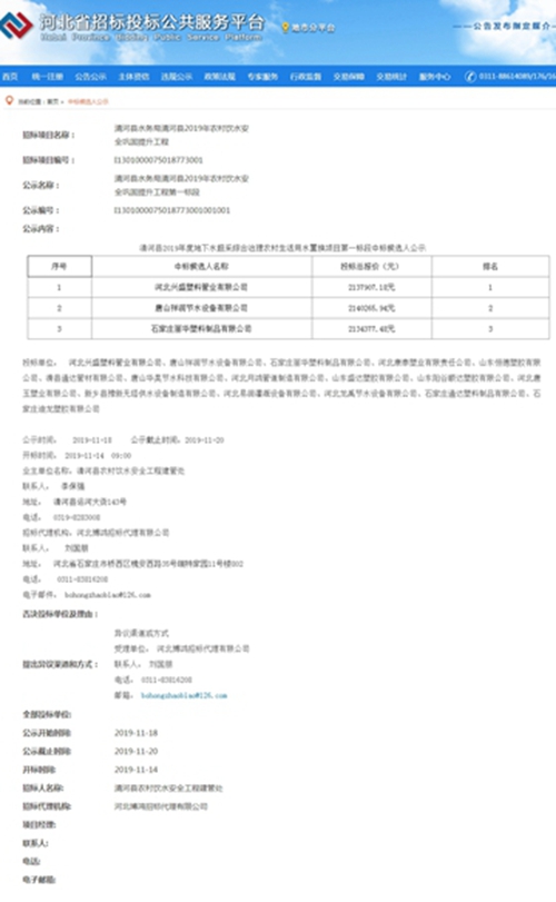 Hebei Shengsheng plastic pipe industry won the bid