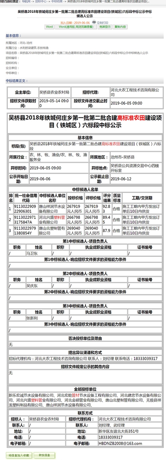 We warmly celebrate shengsheng Pipe winning the bid for the 6th bid of the high-standard farmland construction project of Hezhuang Township, Tiecheng, Wuqiao County in 2018