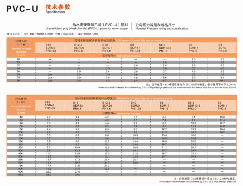 PVC-U water supply pipe